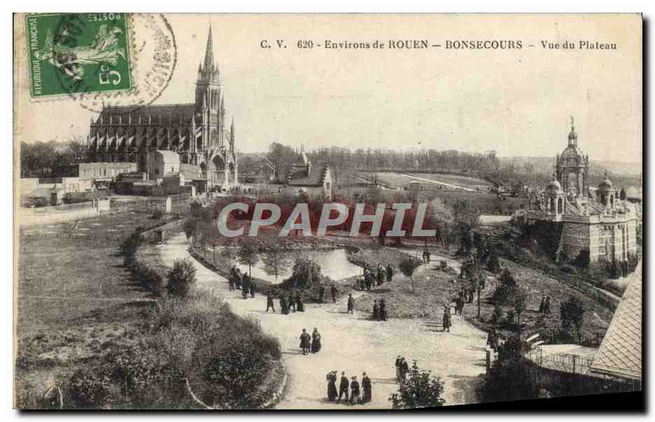 Old Postcard Environs de Rouen Bonsecours View Plateau