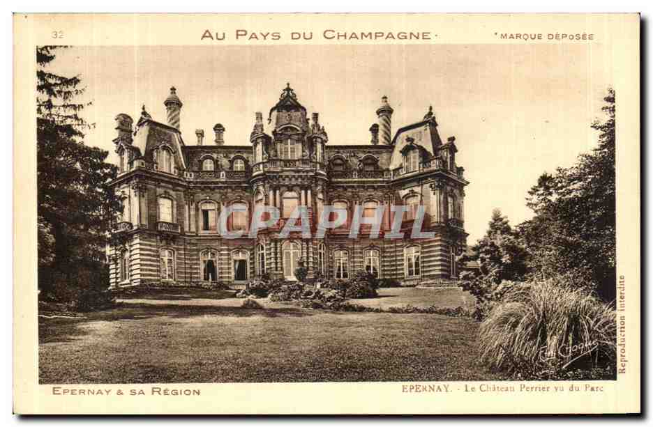 Old Postcard Epernay Chateau Perrier seen from the park