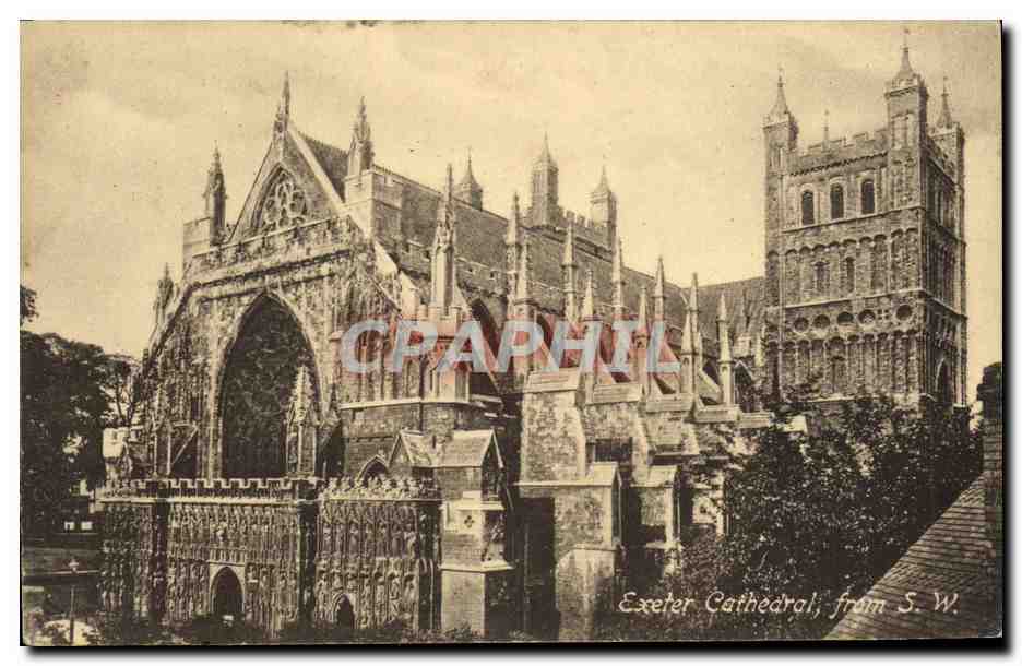 Old Postcard Exeter Cathedral from S W