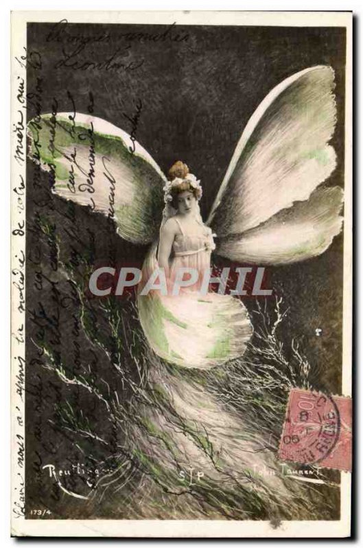 Old Postcard Fancy Butterfly Woman