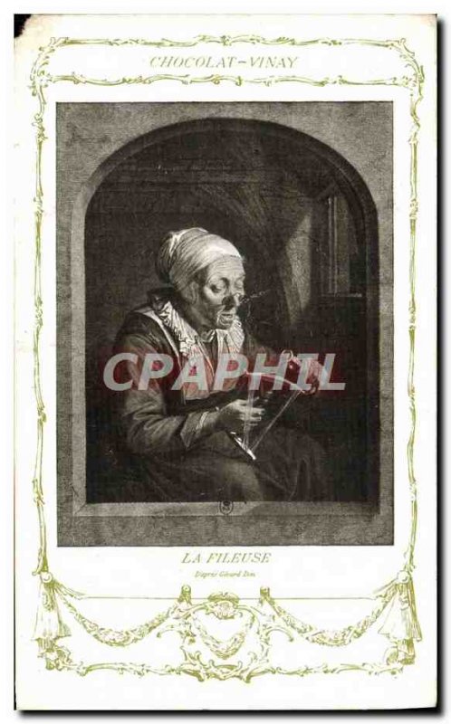 Old Postcard Fancy Chocolate Advertisement Vinay The spinner Gerard Dou