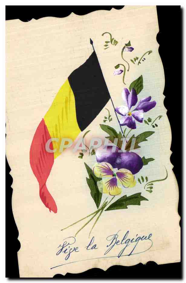 Old Postcard Fancy (drawing hand) Flowers Flag Belgium