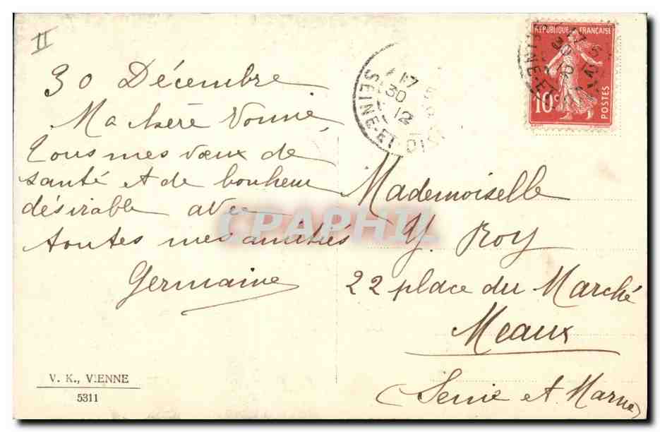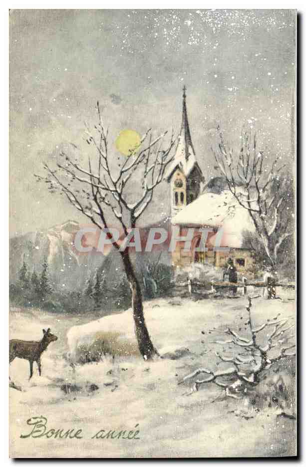 Old Postcard Fancy Happy new year Biche