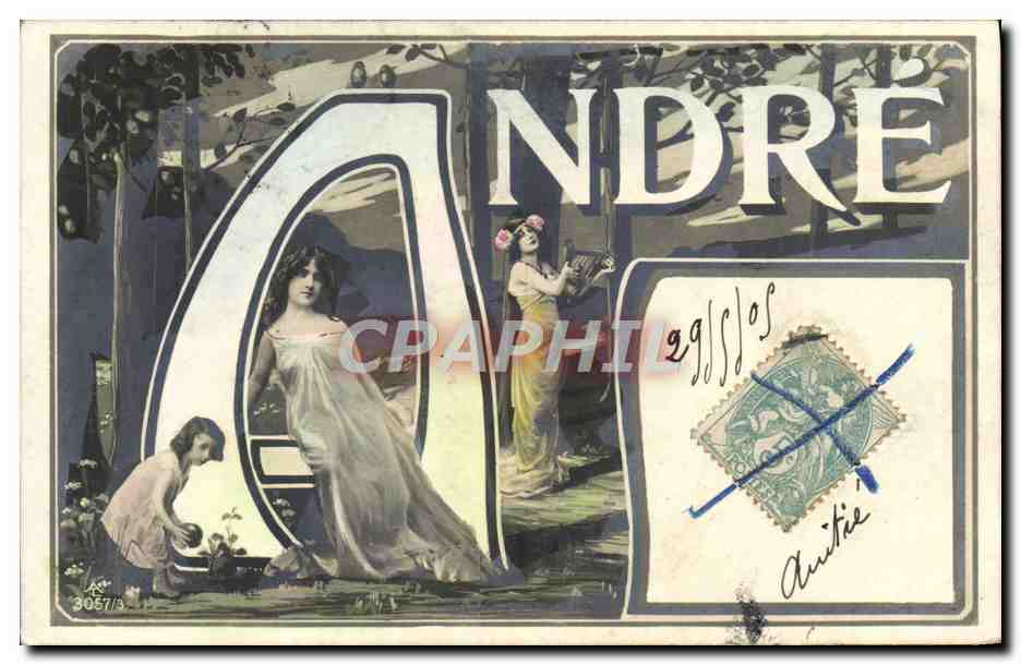 Old Postcard Fancy Surname Andre