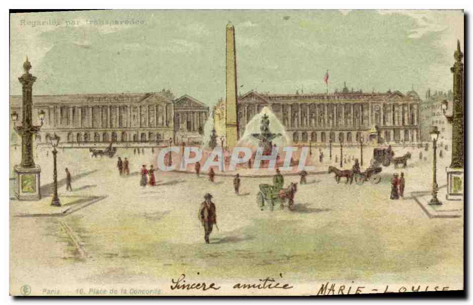 Old Postcard Fancy transparent map Paris Concorde Square