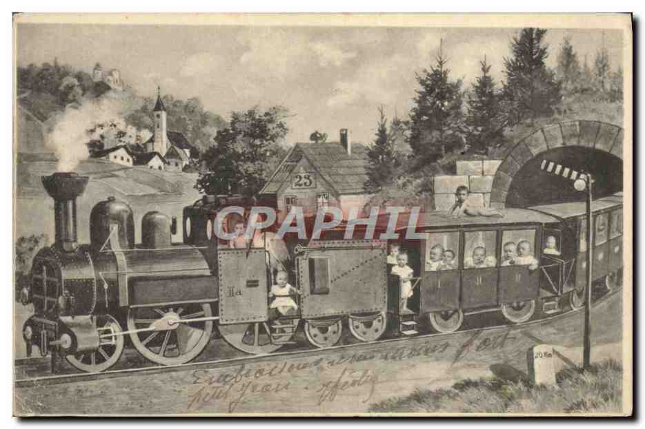 Old Postcard Fantasy Children Train