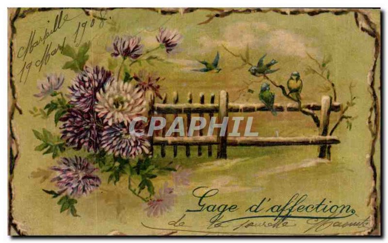 Old Postcard Fantasy Flowers and birds