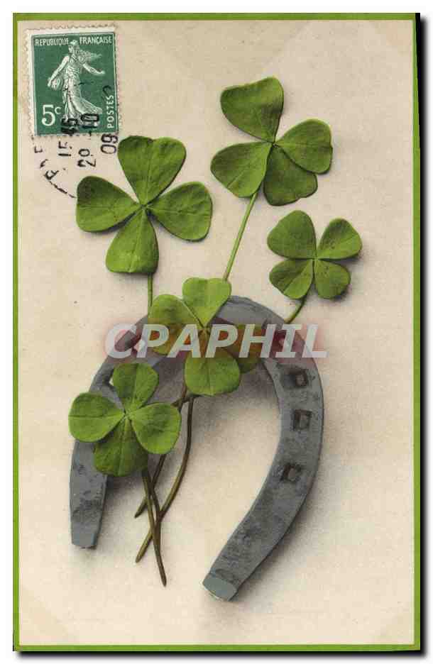 Old Postcard Fantasy Flowers Clover Horseshoe