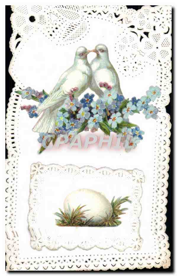 Old Postcard Fantasy Flowers Doves Egg Embroidery