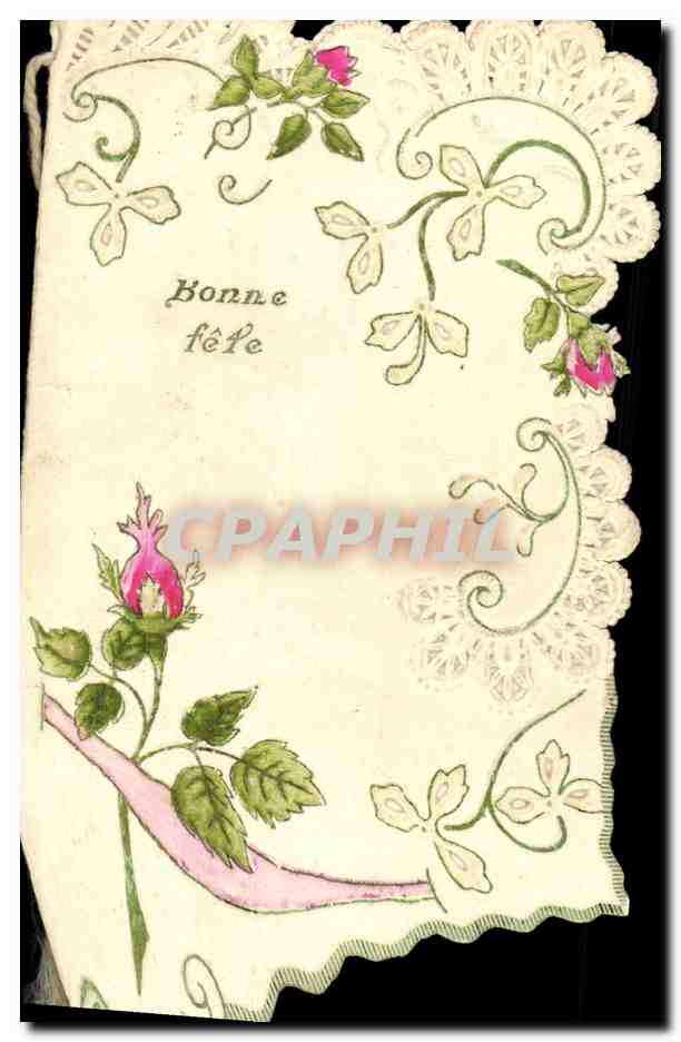 Old Postcard Fantasy Flowers Embroidery