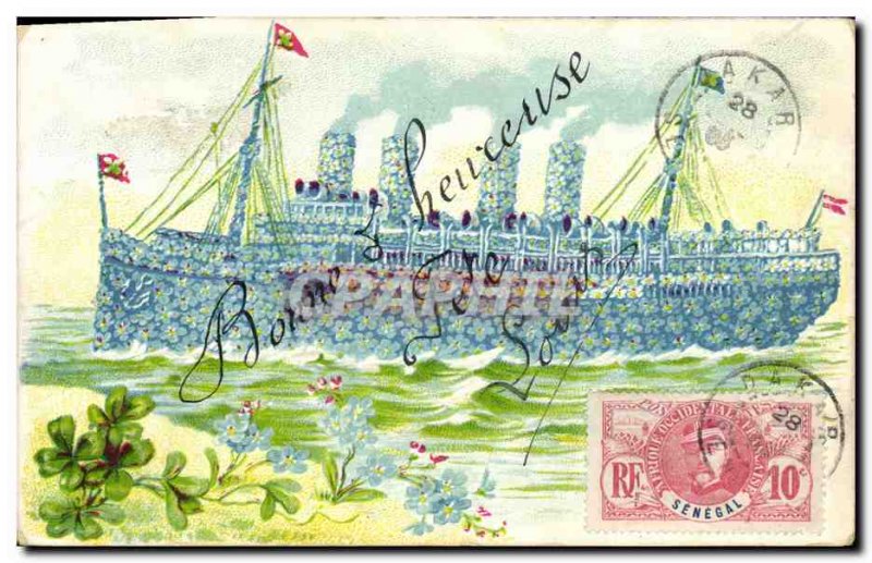 Old Postcard Fantasy Flowers Ship Senegal Dakar