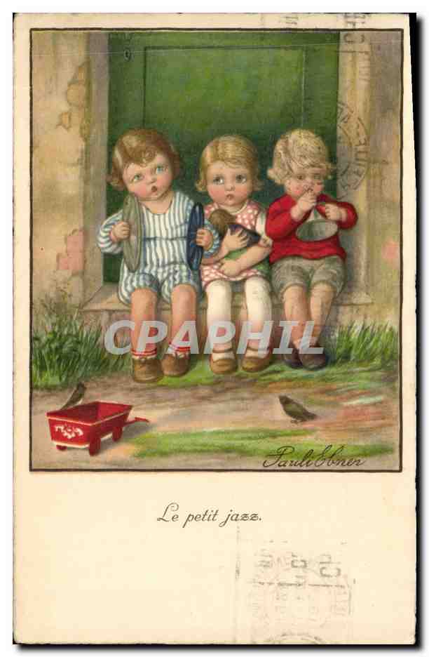 Old Postcard Fantasy Illustrator Child Little Jazz