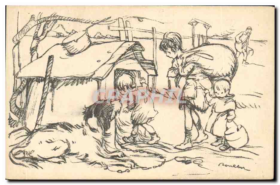 Old Postcard Fantasy Illustrator Poulbot Dog