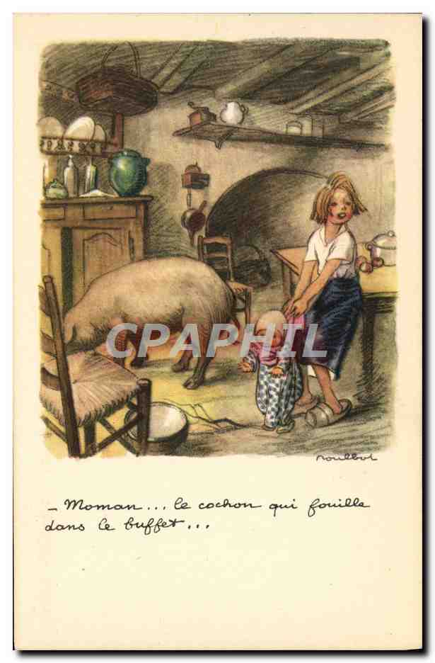 Old Postcard Fantasy Illustrator Poulbot Pig Pig