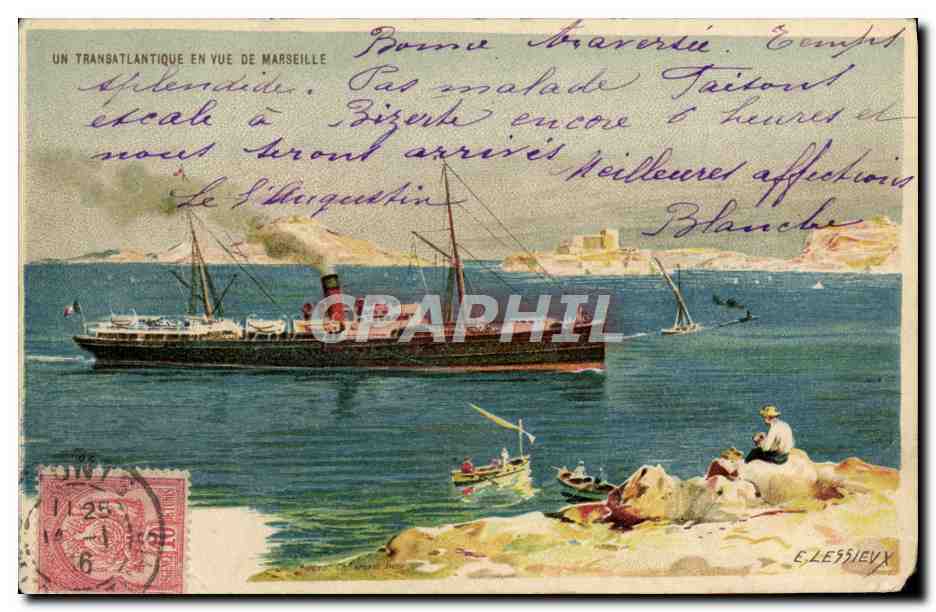 Old Postcard Fantasy Illustrator Transatlantic for Marseille