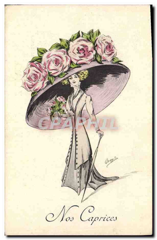 Old Postcard Fantasy Illustrator Woman Cap Hat