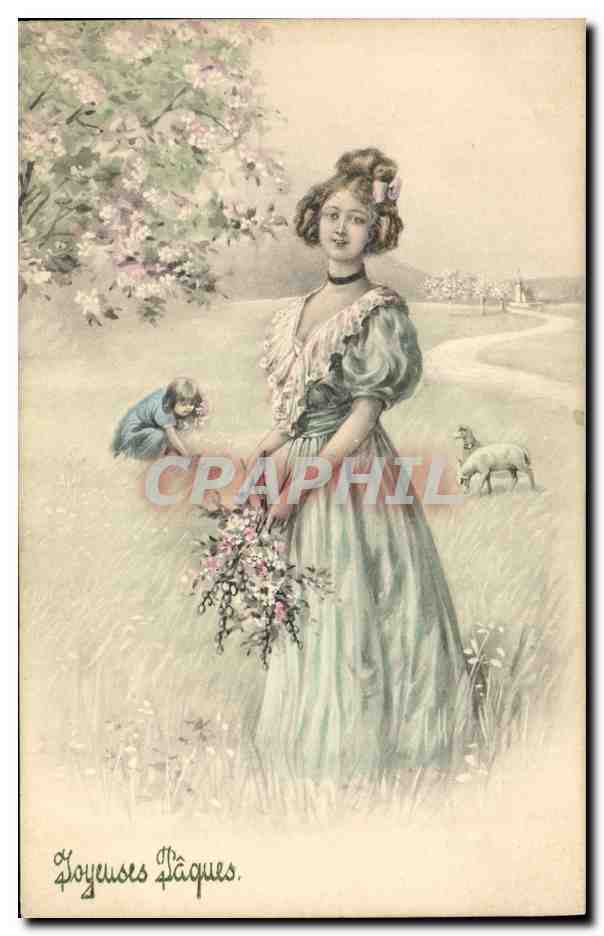 Old Postcard Fantasy Woman Easter