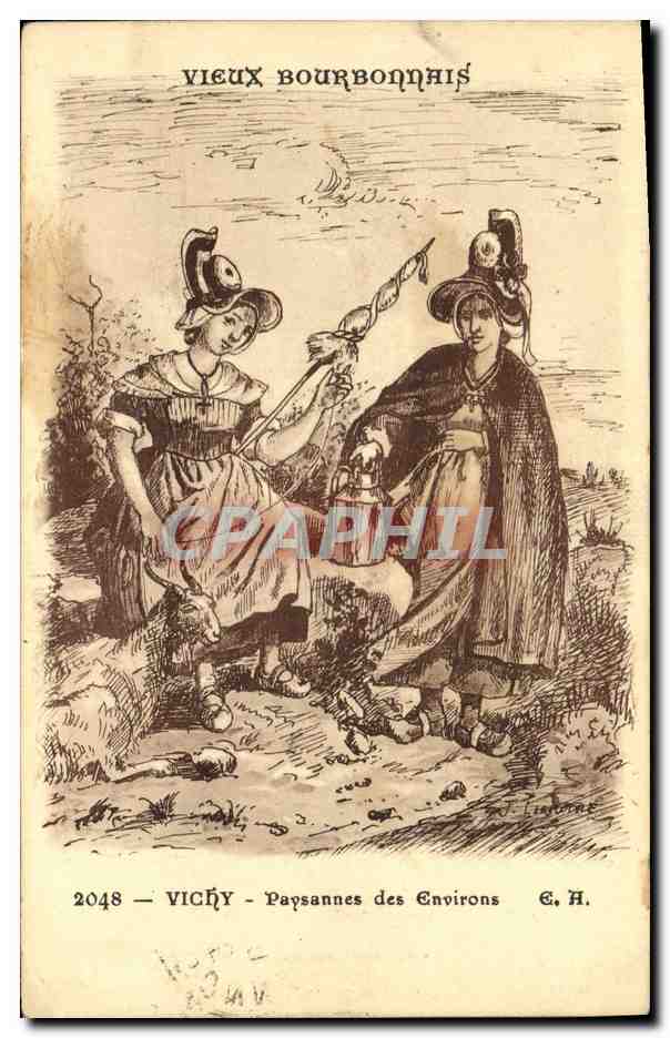 Old Postcard Folklore Bourbonnais Vichy Old Peasant nearby