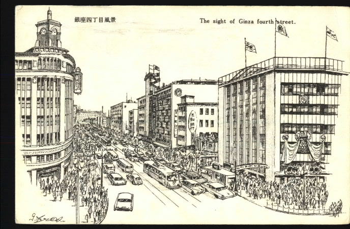 Old Postcard-Fourth Street View-Ginza,Tokyo,Japan