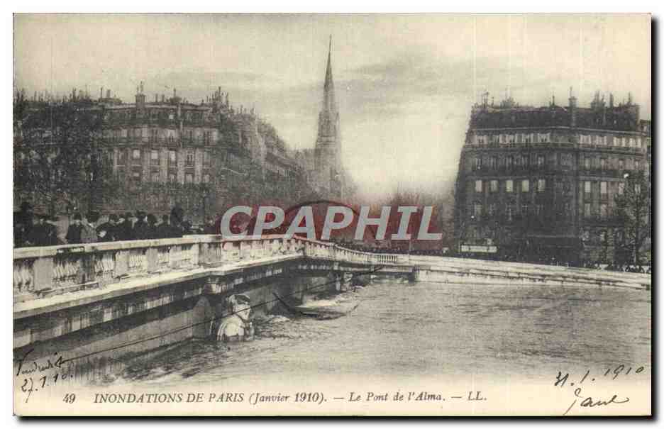 Old Postcard From Paris Floods Bridge From 39Alma & #