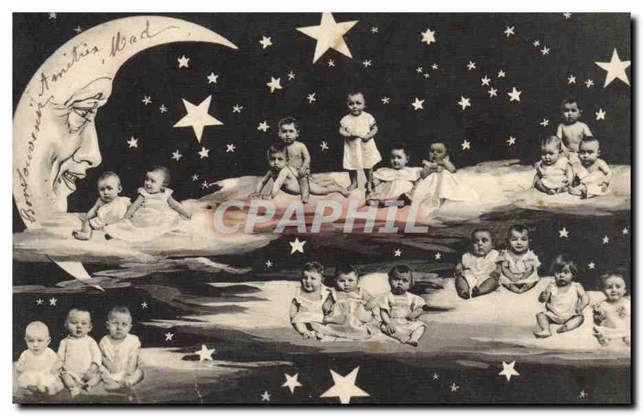 Old Postcard Fun Children Baby Moon