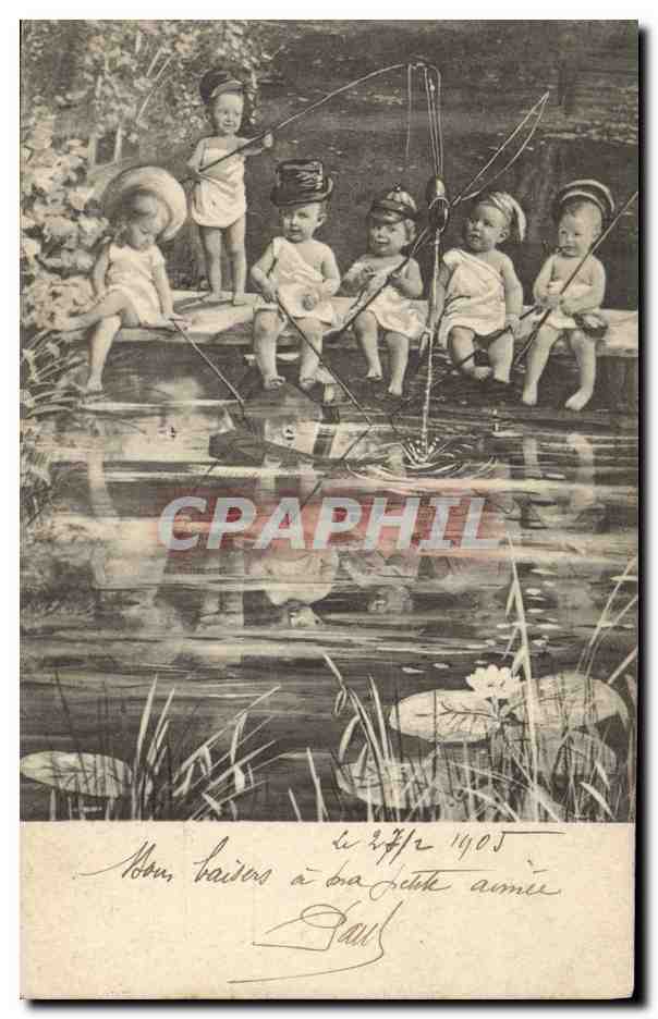 Old Postcard Fun Children Bebe Fishing