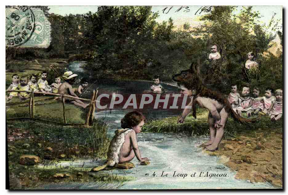 Old Postcard Fun Children Bebe Wolf and & # 39agneau