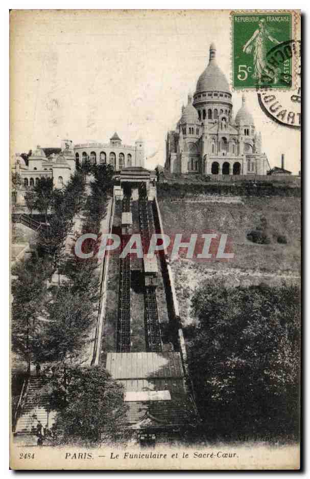Old Postcard Funicular Paris Montmartre and Sacre Coeur