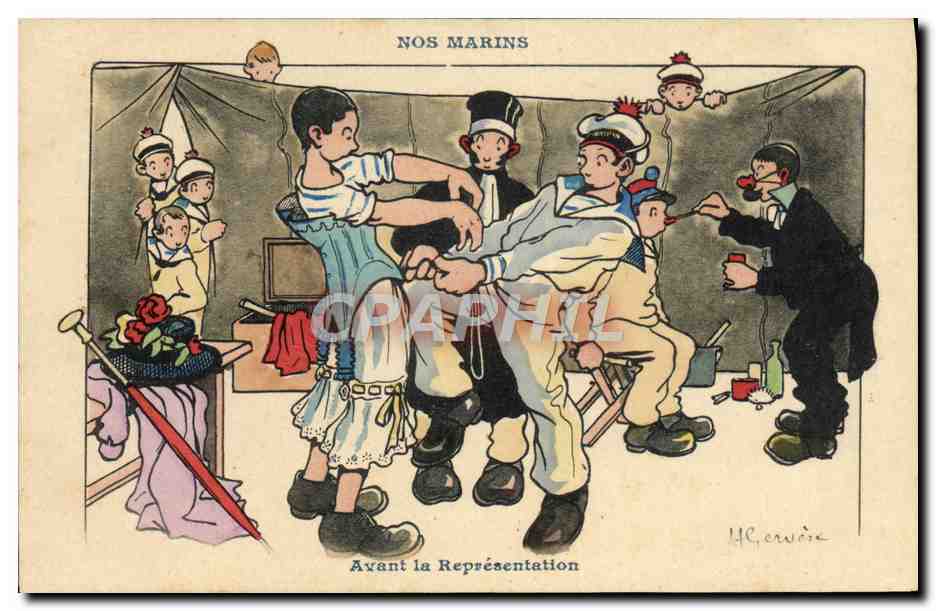 Old Postcard Gervese Illustrator Our Sailors Before the Representation