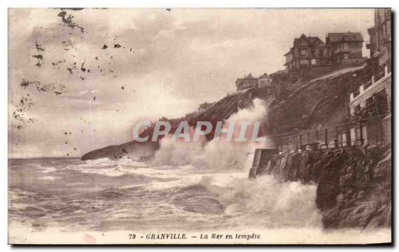 Old Postcard Granville Sea in Storm