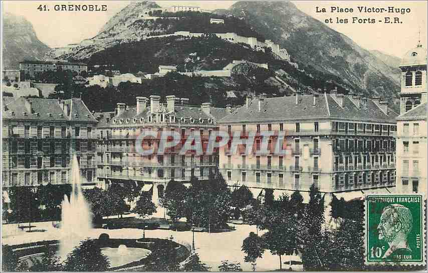 Old Postcard Grenoble Place Victor Hugo and Les Forts E R