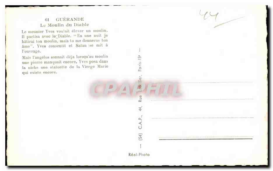 Old Postcard Guerande Le Moulin du Diable Windmill