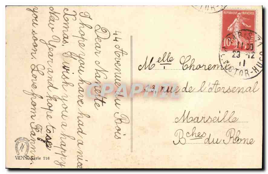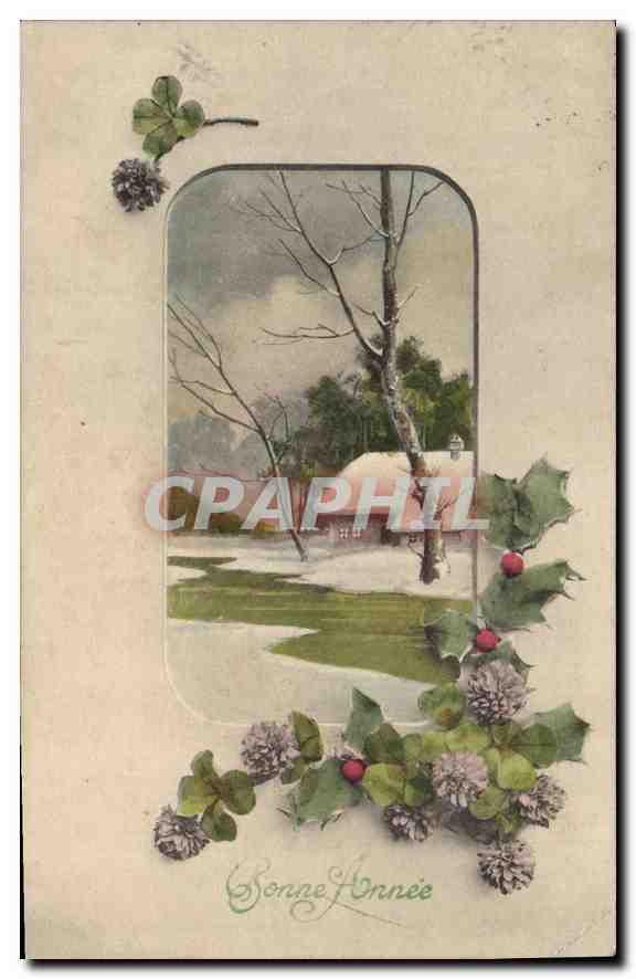 Old Postcard Happy New Year Flowers
