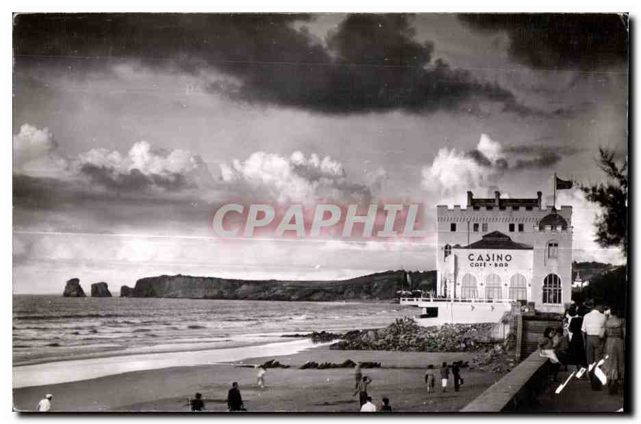 Old Postcard Hendaye two casinos at sunset