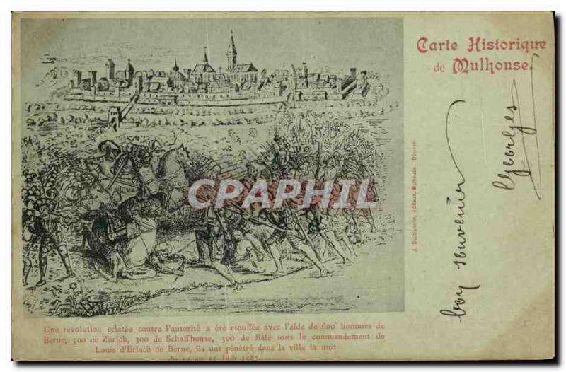 Old Postcard Histroque Map of Mulhouse
