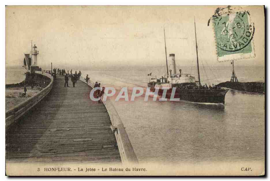 Old Postcard Honfleur La Jetee The Boat Harbor