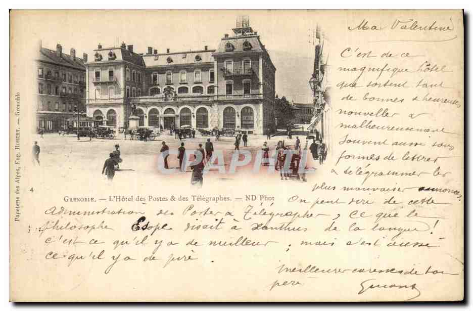 Old Postcard Hotel Posts and Telegraphs Grenoble