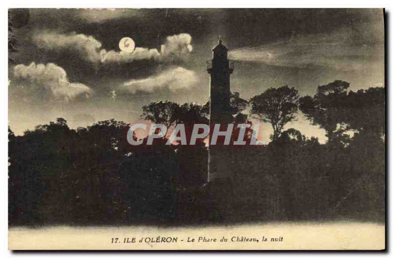 Old Postcard Ile d'Oleron Le Phare du Chateau at night
