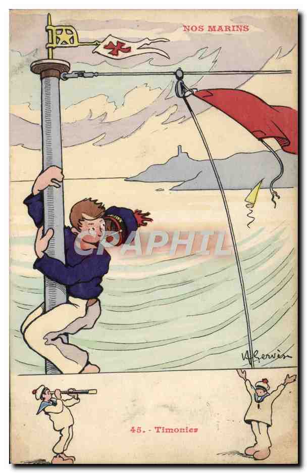 Old Postcard Illustrator Gervese Our sailors Helmsman