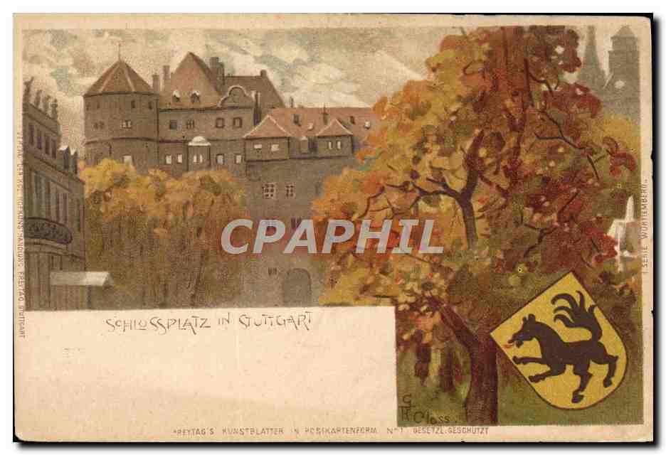 Old Postcard Illustrator Schlussplatz Wolf in Stuttgart