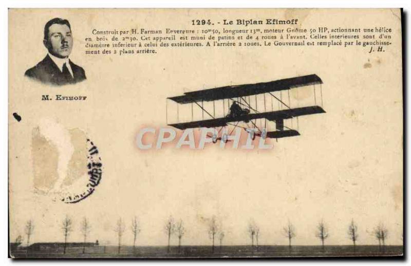 Old Postcard Jet Aviation Biplane Efimoff