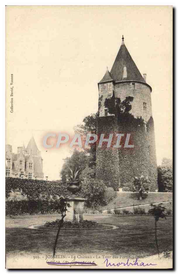 Old Postcard Josselin Le Chateau Tower fortifications