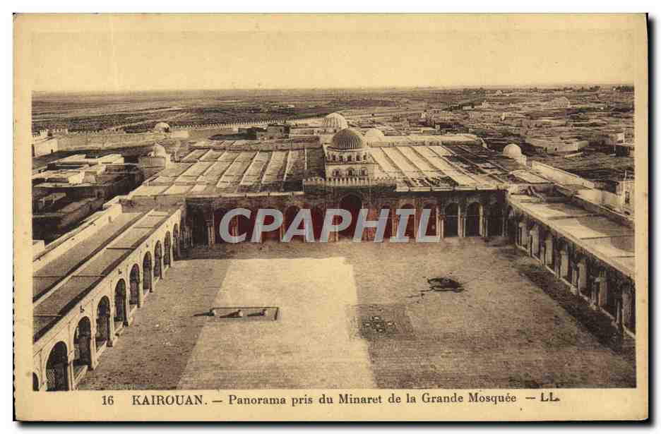Old Postcard Kairouan Panorama taken of the minaret of the great mosque