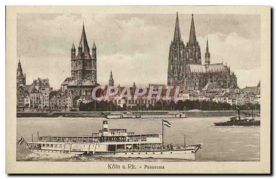 Old Postcard Koln has Rh Panorama Boat