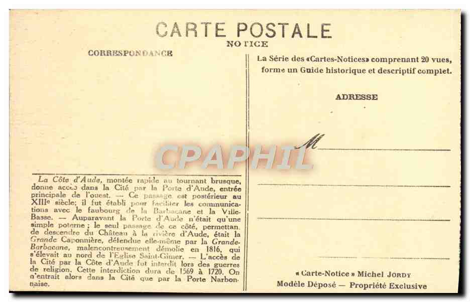 Old Postcard La Cite Carcassonne La Cote D & # 39Aude