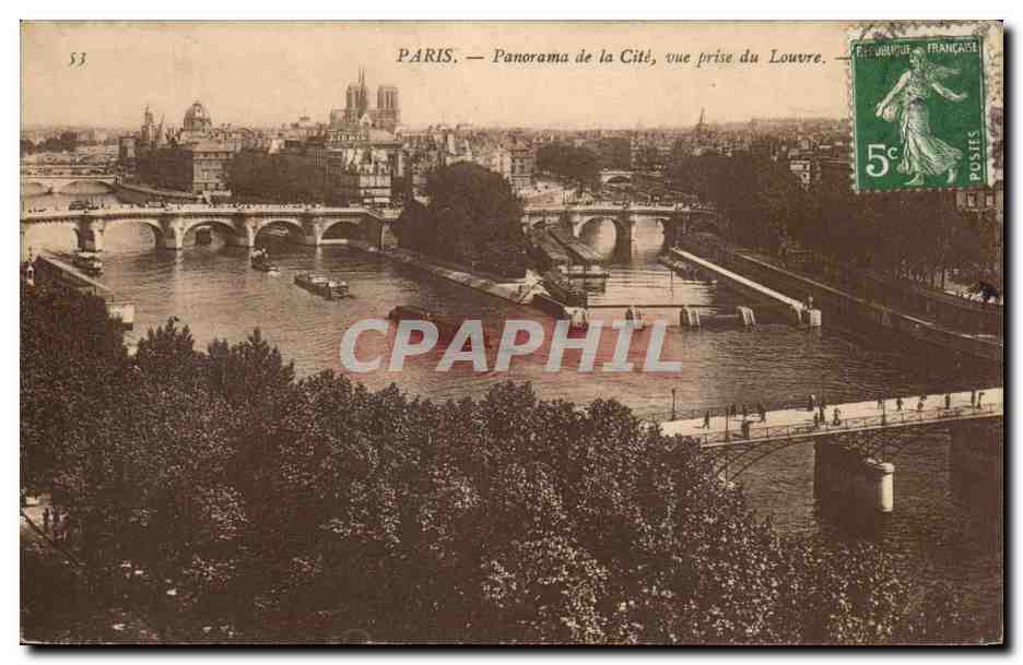 Old Postcard La Cite Paris Panorama View from the Louvre