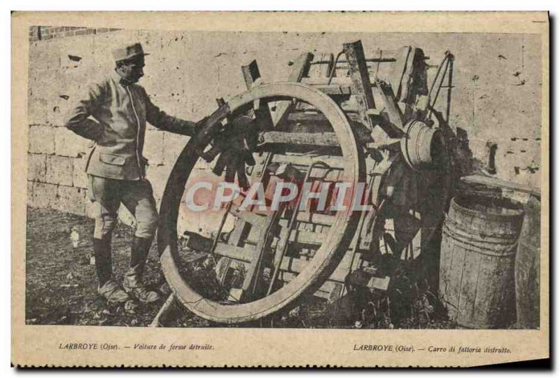 Old Postcard Larbroye farm Car destroyed