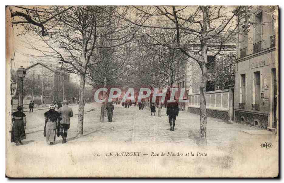 Old Postcard Le Bourget Flanders Street and Post Office