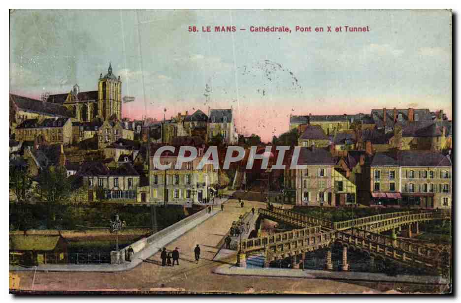 Old Postcard Le Mans Cathedral Bridge and tunnel X