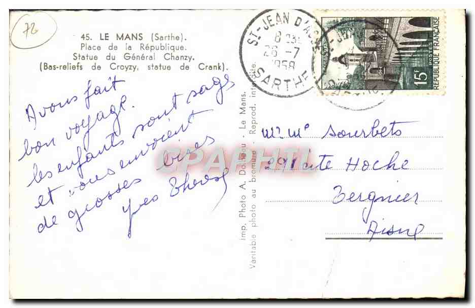 Old Postcard Le Mans Place De La Republique